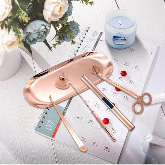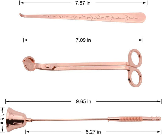 Candle Accessory Set, Candle Snuffer, Candle Wick Trimmer, Candle Wick Dipper with Gift Package, 3 in 1 Candle Tool Kit, Great for Scented Candles Lovers (Rose Gold)