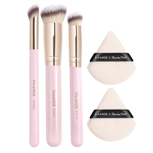 Beauty Blender Makeup Brush with Powder Puff Set, 5 Counts/Set Versatile Soft Makeup Brushes for Foundation, Powder, Concealers, Eye Shadows, Blush, Lip Balm