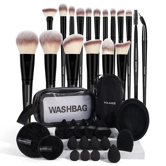Makeup Brush & Puff with Container, 37Pcs/Set Makeup Brushes & Puff, Including 18 Cosmetic Brushes 15 Sponges 2 Bags 1 Cleaner Bowl and 1 Scrubber Egg, Makeup Brushes Sets, Makeup Tools