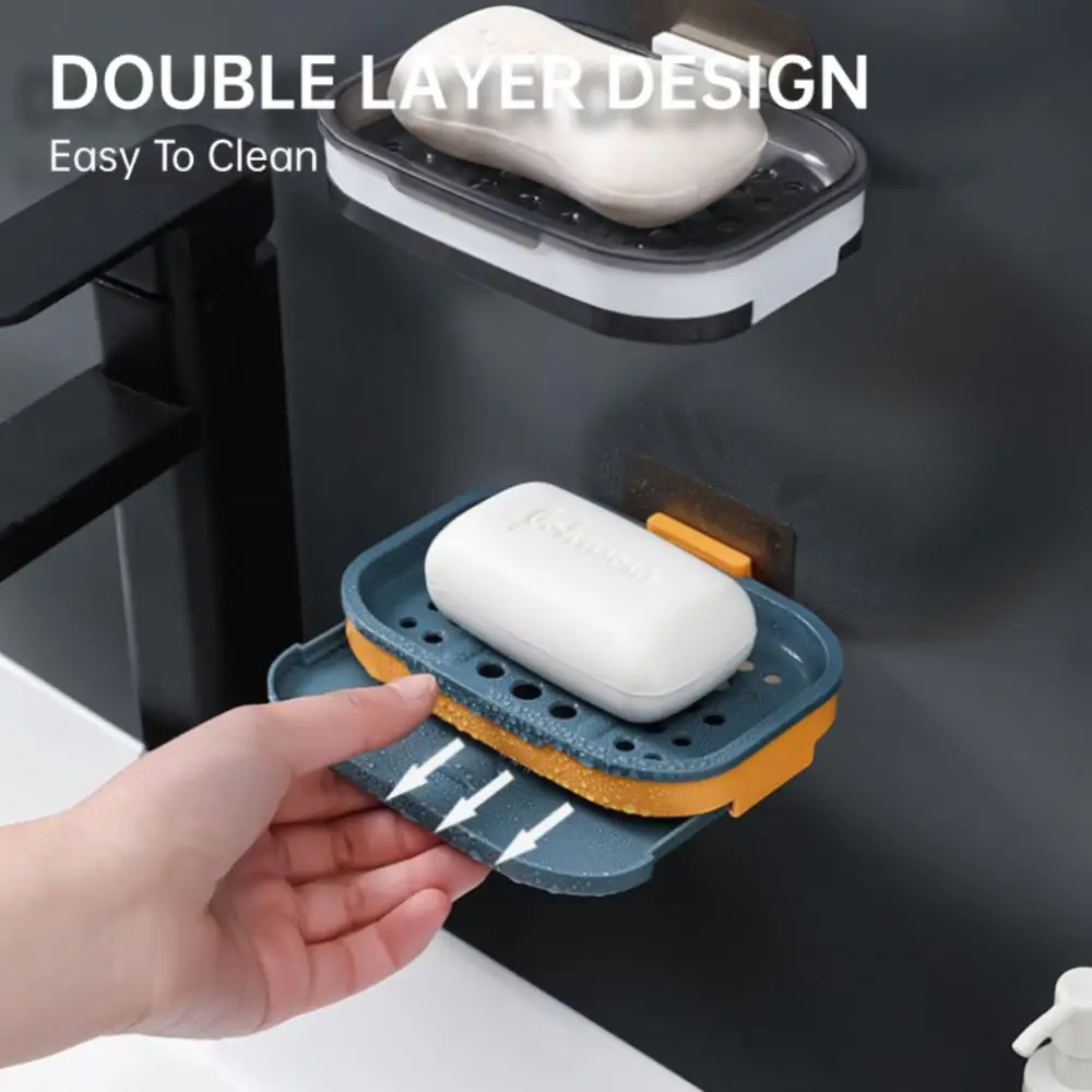 Double Layers Soap Box Drain Soap Holder Bathroom Accessories Suction Cup Soap Dish Tray Soap Dish for Bathroom Soap Container
